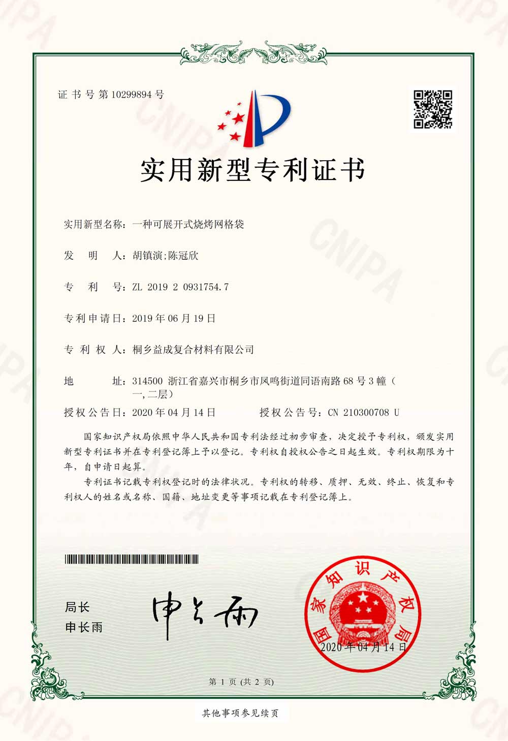 สิทธิบัตรสำหรับถุงตะแกรงย่างแบบขยายได้
