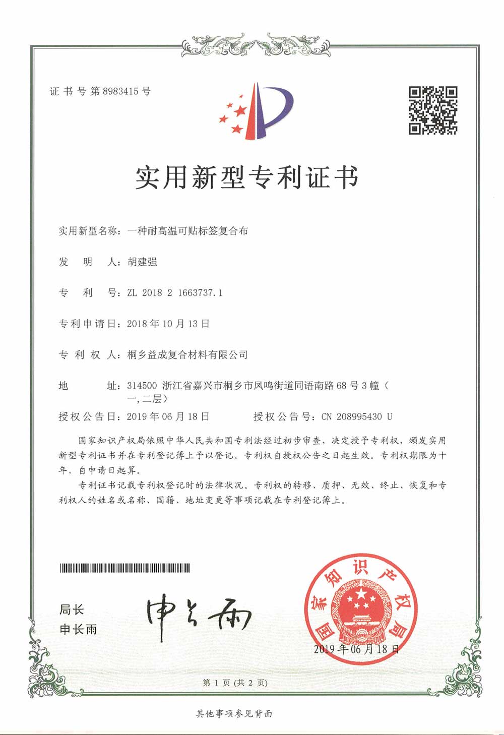 สิทธิบัตรสำหรับผ้าคอมโพสิตที่ทนต่ออุณหภูมิสูงและติดฉลากได้